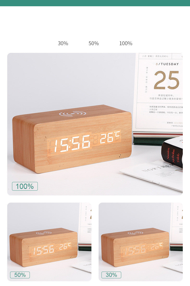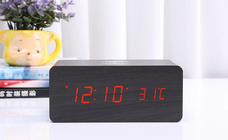 LED digital alarm clock wireless charging wooden clock
